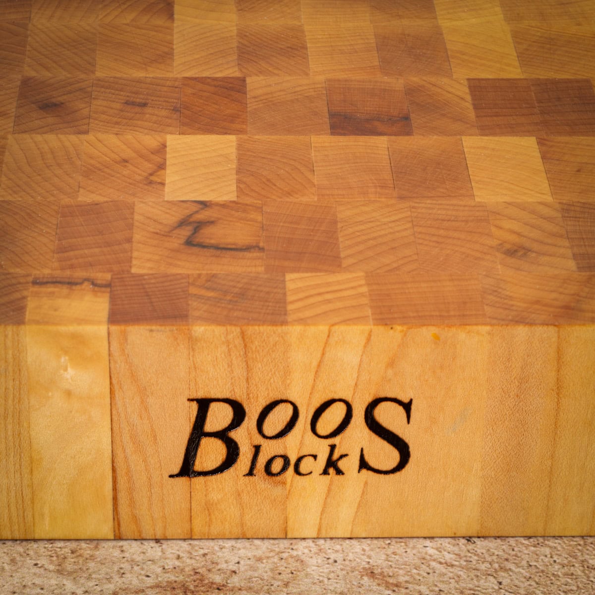 End-grain cutting board - side view.