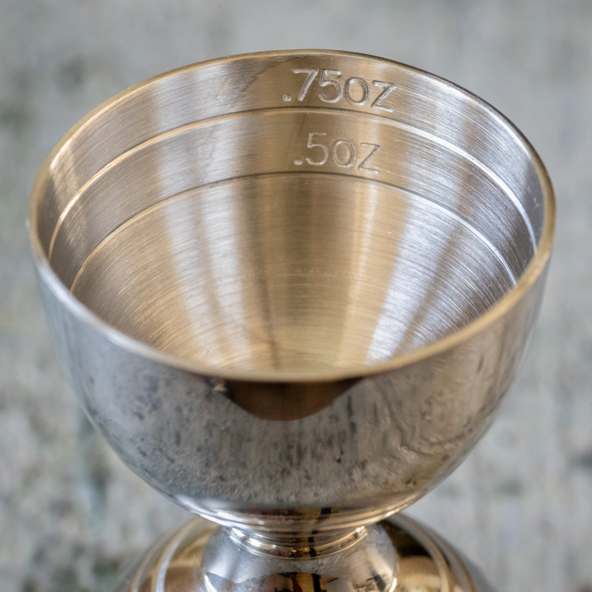 - Jigger - A double sided bar jigger with markings inside for .5 ounce, .75 ounce and 1.0 ounce.