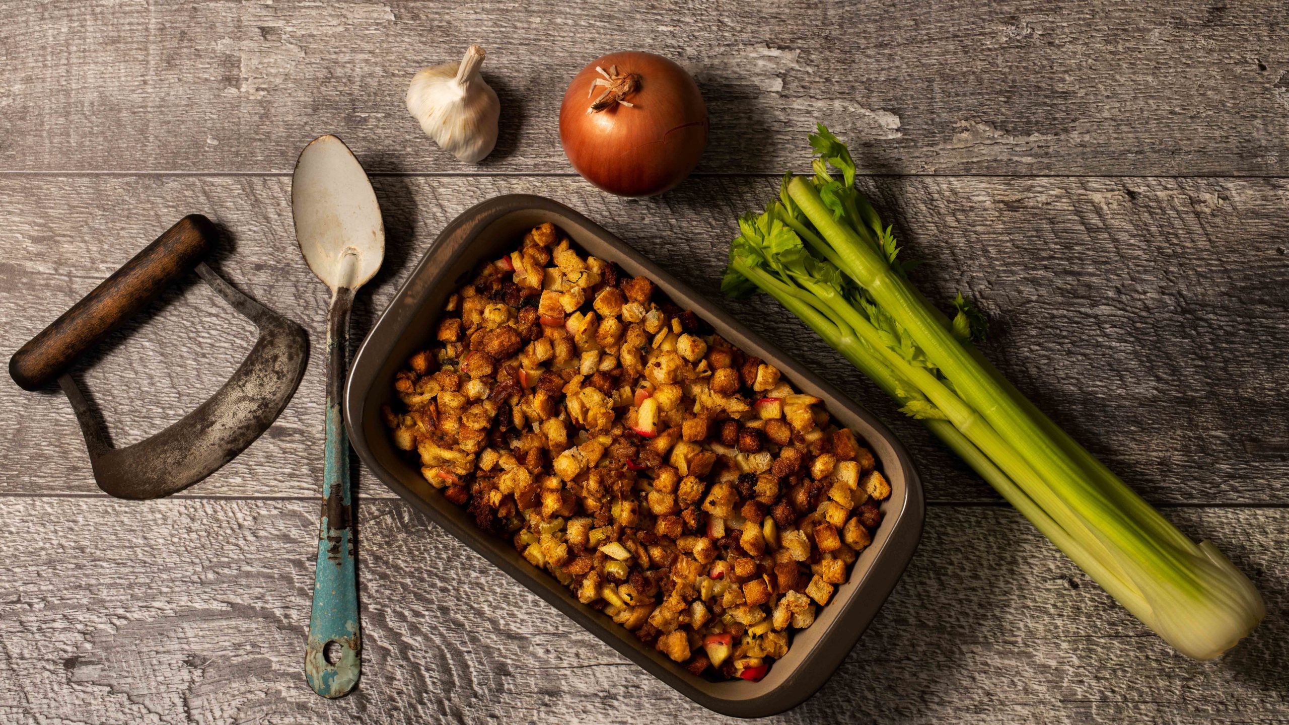 - Stale bread, dried & cubed (out of a bag is fine)